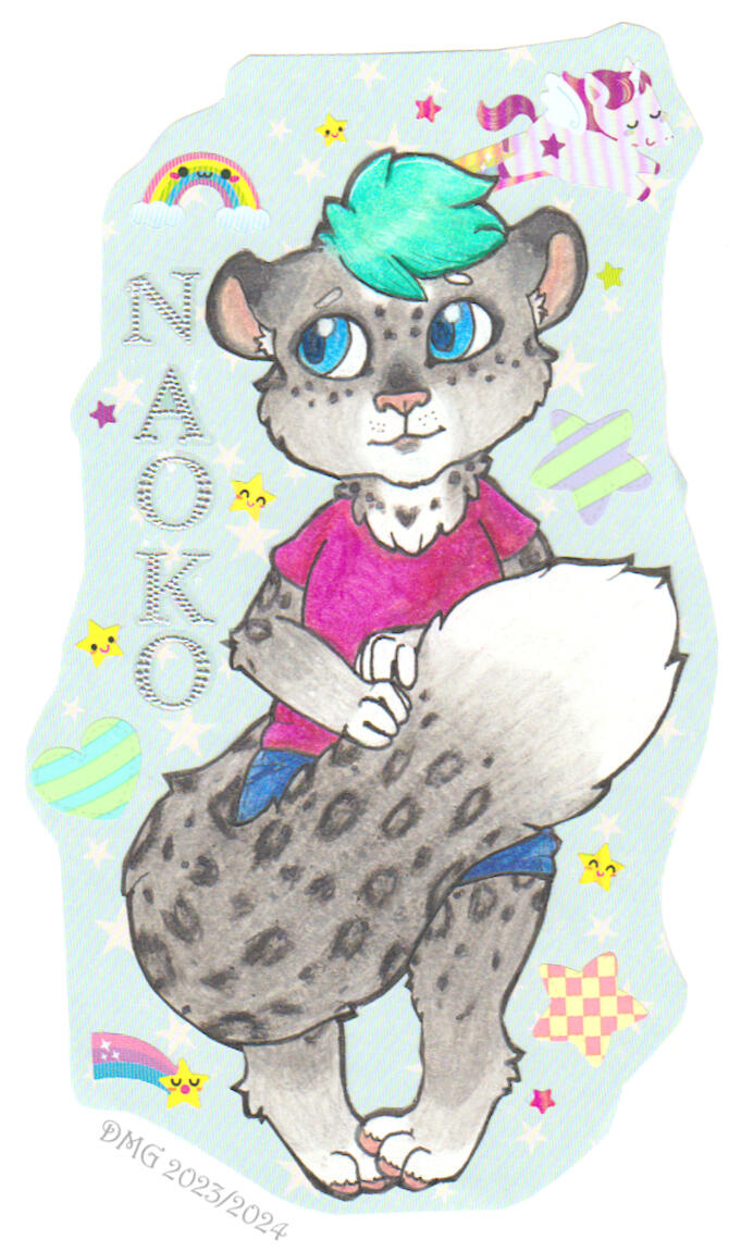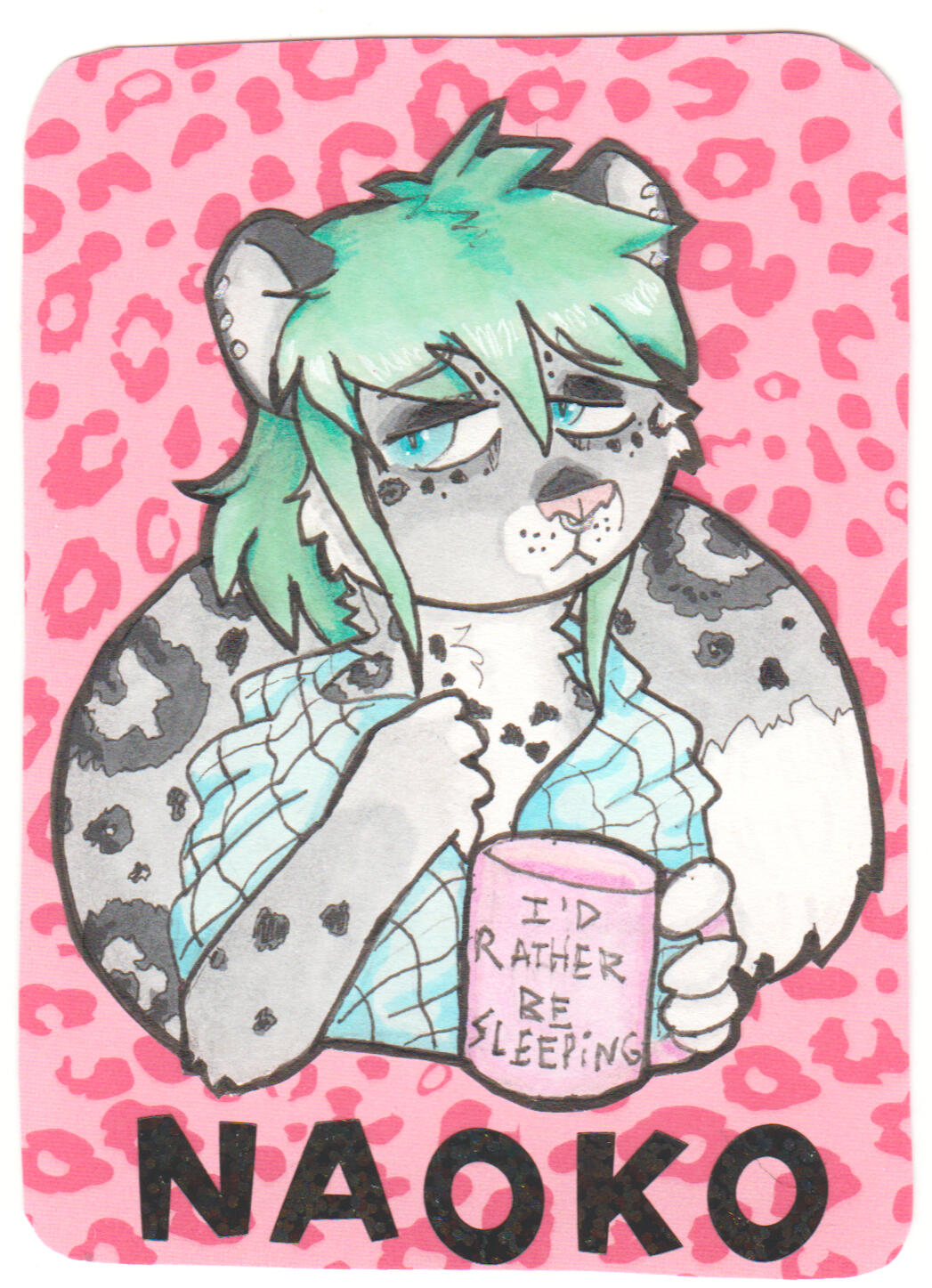 Name: Fox "Naoko" GravesAbout me: I've been doing nerdy things for as long as I can remember, playing TTRPGs, TCGs, video games on console and PC. Art has always been a staple in my life, and a way of expression when words just didn't cut it. I firmly believe in encouraging others and bringing positivity and safety to spaces, rather than discouraging people from exploring their passions.What do I do?: As the coffee-powered gremlin of our dastardly duo, I do most of the admin and behind the scenes stuff. I'm responsible for updating and maintaining the website, the bookkeeping, inventory management, photos and photo editing as well as all things dice and doing the machine sewing. I also do art for some of our stickers!
